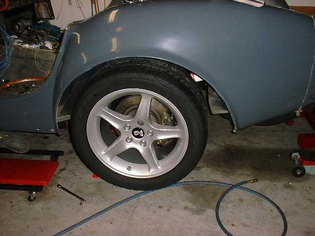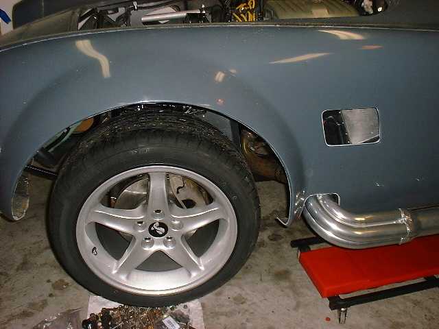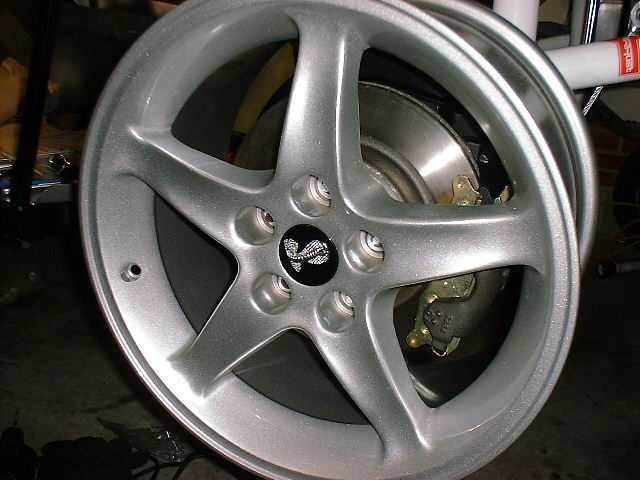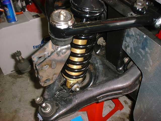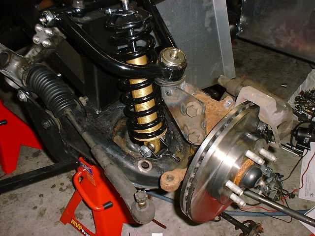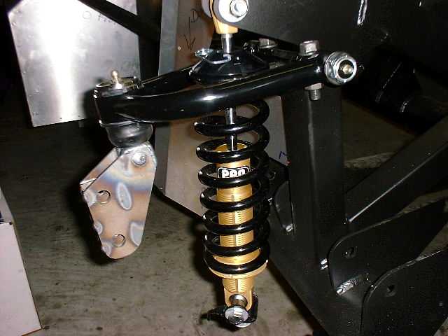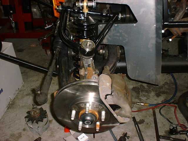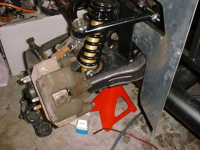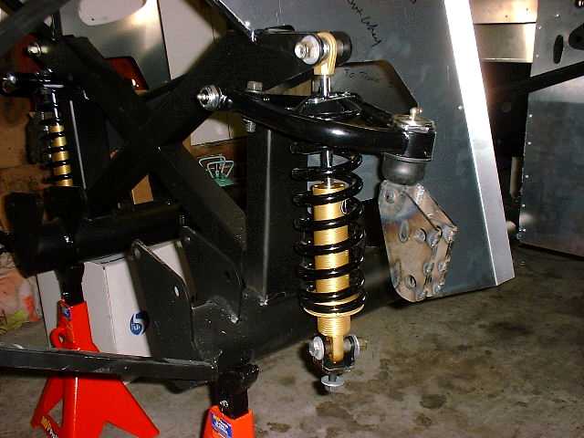 The kit comes standard with coil over shock for the front. The rear will incorporate Mustang components. We have opted to upgrade the rear shocks to KYB units. The pictures below are missing the lower A-arm, spindle and hub. Theses parts are currently on order.
